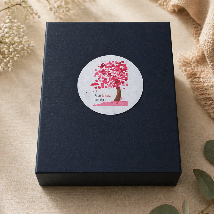 - Persönliches Sticker-Label erhältlich («Beste Mama der Welt» oder nach Wunsch)