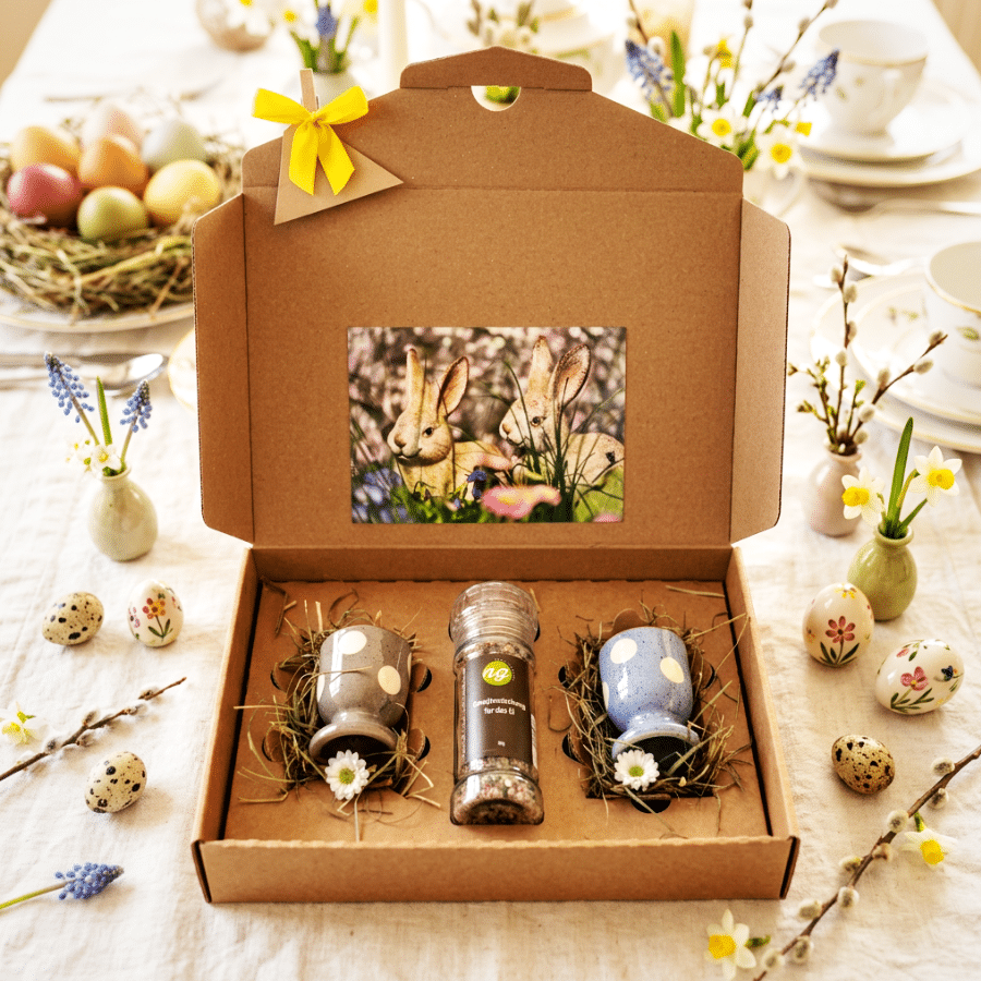 Im Zentrum steht unsere aromatische Gewürzmischung für das Ei – die perfekte Begleitung für das traditionelle Osterei. Fein abgestimmt und voller Geschmack verleiht sie jedem Ei eine besondere Note und macht aus einer einfachen Ostertradition ein kleines Gourmet-Erlebnis.